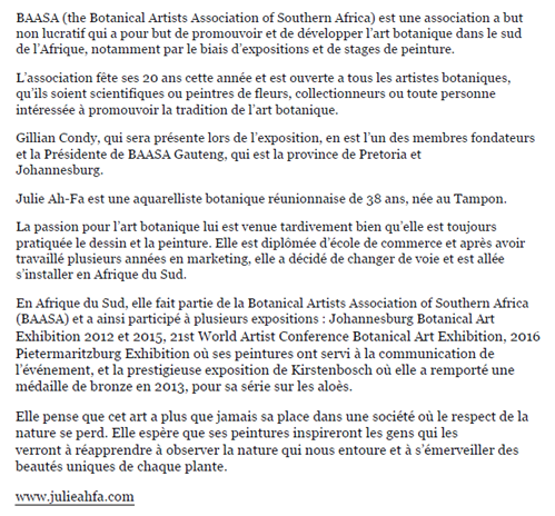 2019 BAASA Gauteng on Reunion Island August 12, 2022 Posted by BAASA 08 Aug A few of the press cuttings covering the botanical art exhibition in July