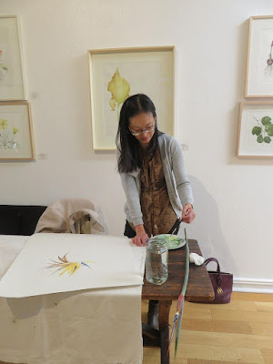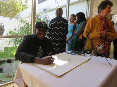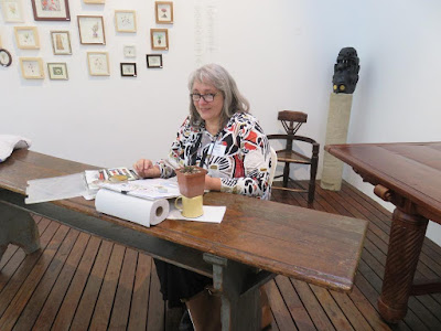 Sandie Burrows working on one of her Drift Seed drawings. Sandie works in colour pencilJanet Snyman demonstrating her beautiful watercolour skills Johannesburg artist Julie AhFa also working in watercolour Young Zimbabwean artist Liberty Shuro drew a lot attention with his graphite work