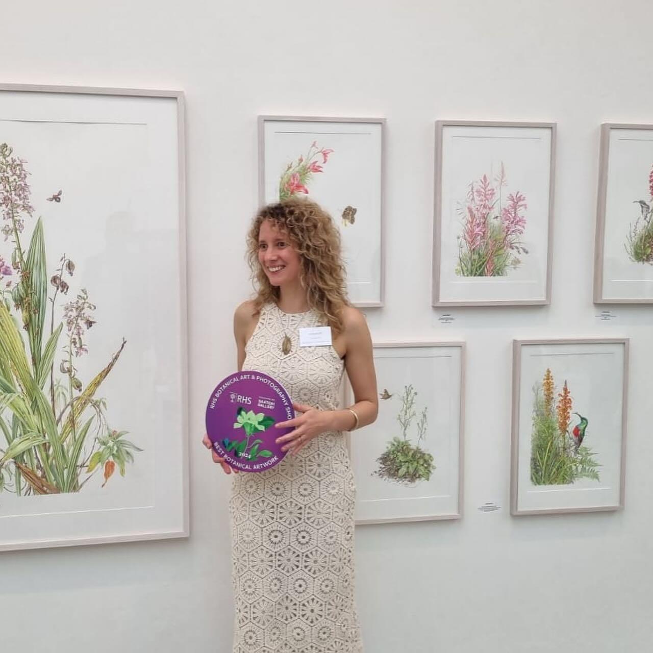 Hot on the heels of the Chelsea Flower Show, South Africa just achieved another prestigious botanical award. Not only has young botanical artist and first-time exhibitor Daleen Roodt (age 37) received an RHS Gold Medal, she was also awarded Best Artwork on Show for her exceptionally large orchid painting at the RHS Botanical Art Show in London. Daleen is only the second South African artist to have received the Best Botanical Artwork award, since Margaret de Villiers in April 2013, and amongst only a handful of previous South African gold medallists. Three weeks into the show, she also won the People’s Choice Award.